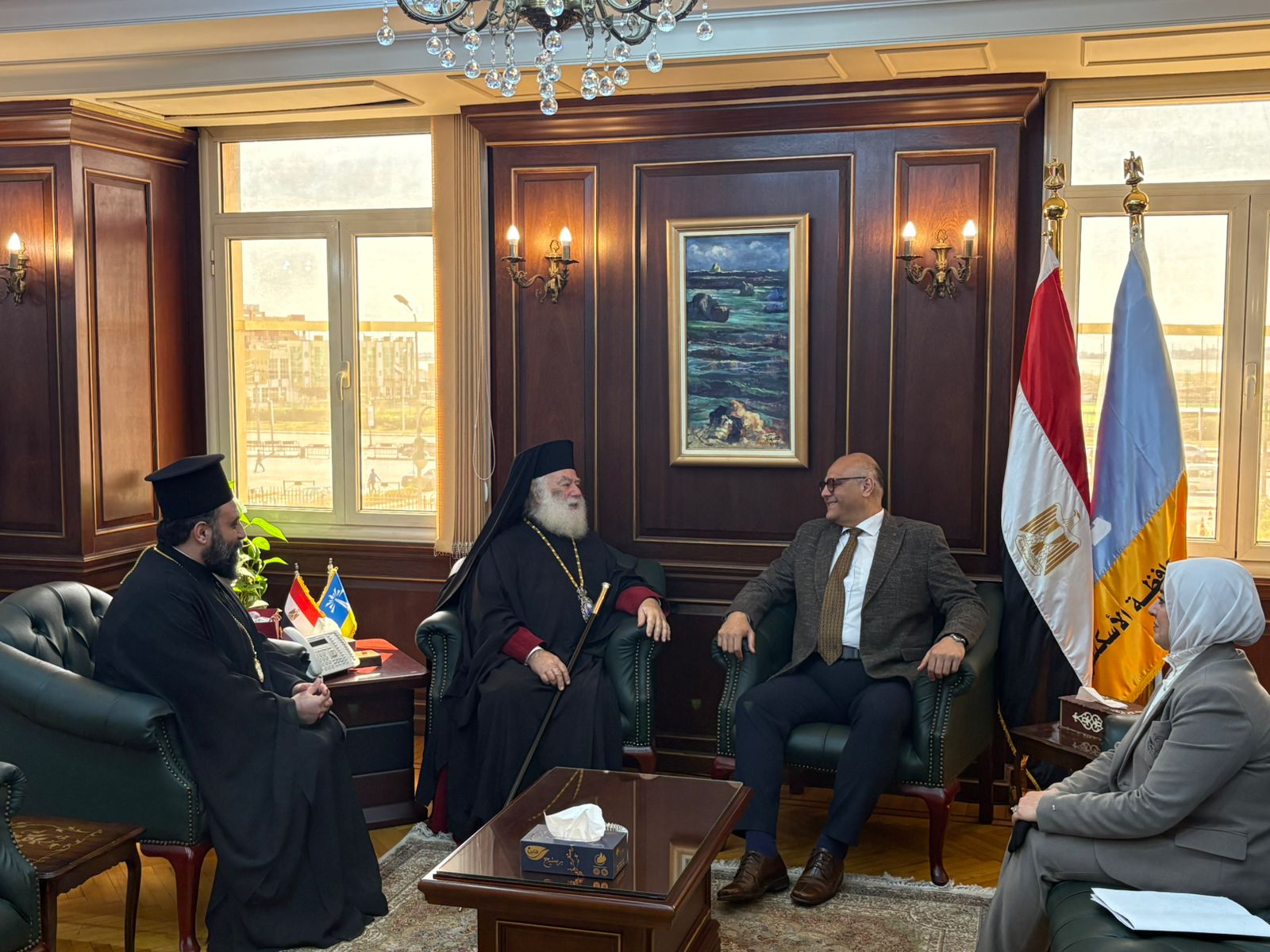 У среду, 11. марта 2026. године, папа и патријарх Теодор II Александријски и све Африке учинио је куртоазну посету новом гувернеру Александрије, господину Ајману Атији, у седишту гувернерата града.
