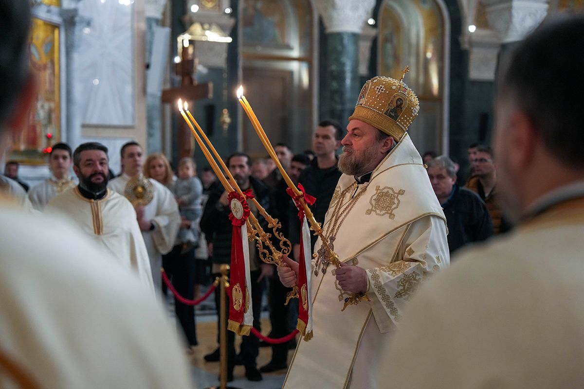 Тумачећи јеванђељски одељак прочитан током богослужења, јереј Мирослав Васић је нагласио да нас света Црква данас сабира у двострукој светлости:
