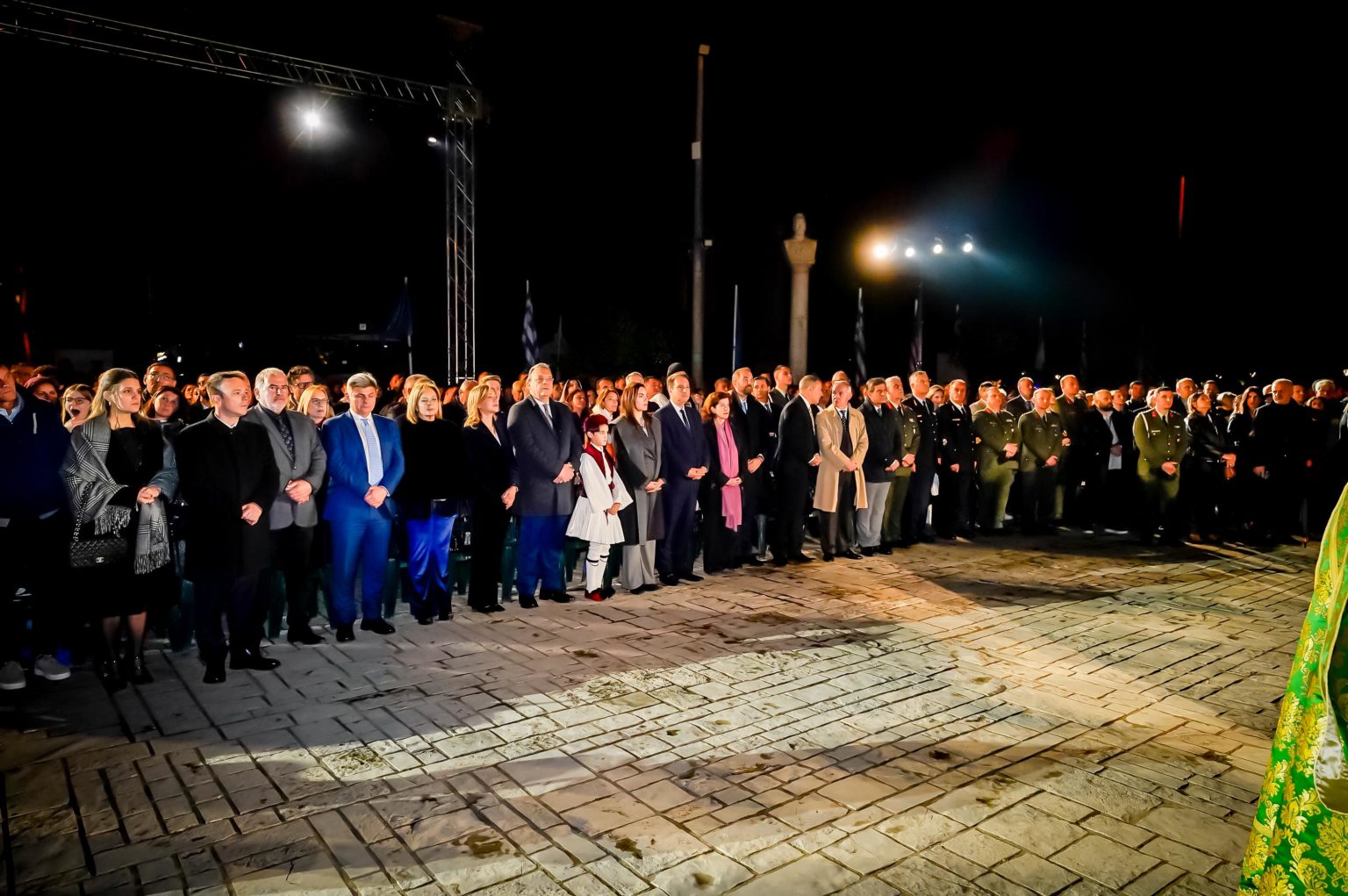 По окончању богослужења формирана је свечана литија која је од саборног храма кренула ка Врту хероја, где је служен помен пострадалима у Изласку, а затим су положени венци од стране државних и друштвених представника. У наставку програма одржана је додела награда учесницима традиционалне „трке жртве“, док је музички део обележен извођењем композиције посвећене Месолонгију.