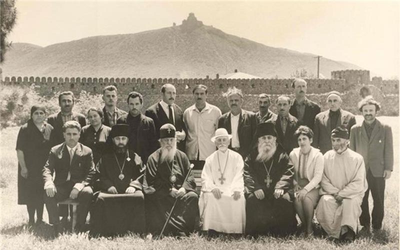 Фото: Мцхета. Владика Илија (други с лева у доњем реду), патријарх Јефрем, свештенство и парохијани СветицФотоховели саборне цркве