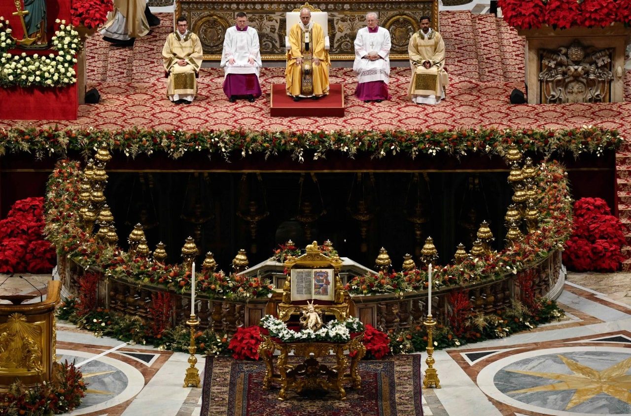 На Божић, 26. децембра 2025. године, папа Лав XIV је у базилици Светог Петра у Риму служио свету мису Рођења Христовог, истичући да се мир Божији рађа из прихватања људске крхкости и страдања. У својој беседи нагласио је да се у немоћи Богомладенца открива Божија жеља да се приближи човеку и да тражи одговор љубави, бриге и солидарности.