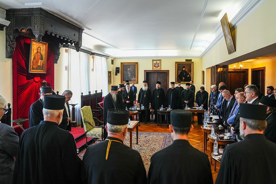 Седници је предходио чин призива Светог Духа који је, у Придворном храму Светог Симеона Мироточивог, служио Преосвећени викарни Епископ новобрдски г. Иларион, уз саслужење: протојереја-ставрофора др Владимира Вукашиновића, архијерејског намесника београдског; протојереја Ђорђа Стојисављевића, шефа Кабинета Патријарха српског, протођакона Дамјана Божића и ђакона Николе Масникосе.