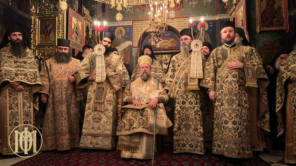 Свети панигир отпочео је вишечасовним свеноћним бденијем, током којег су медоточиве химне, појане од стране симонопетарских отаца, створиле атмосферу небеске мистагогије.