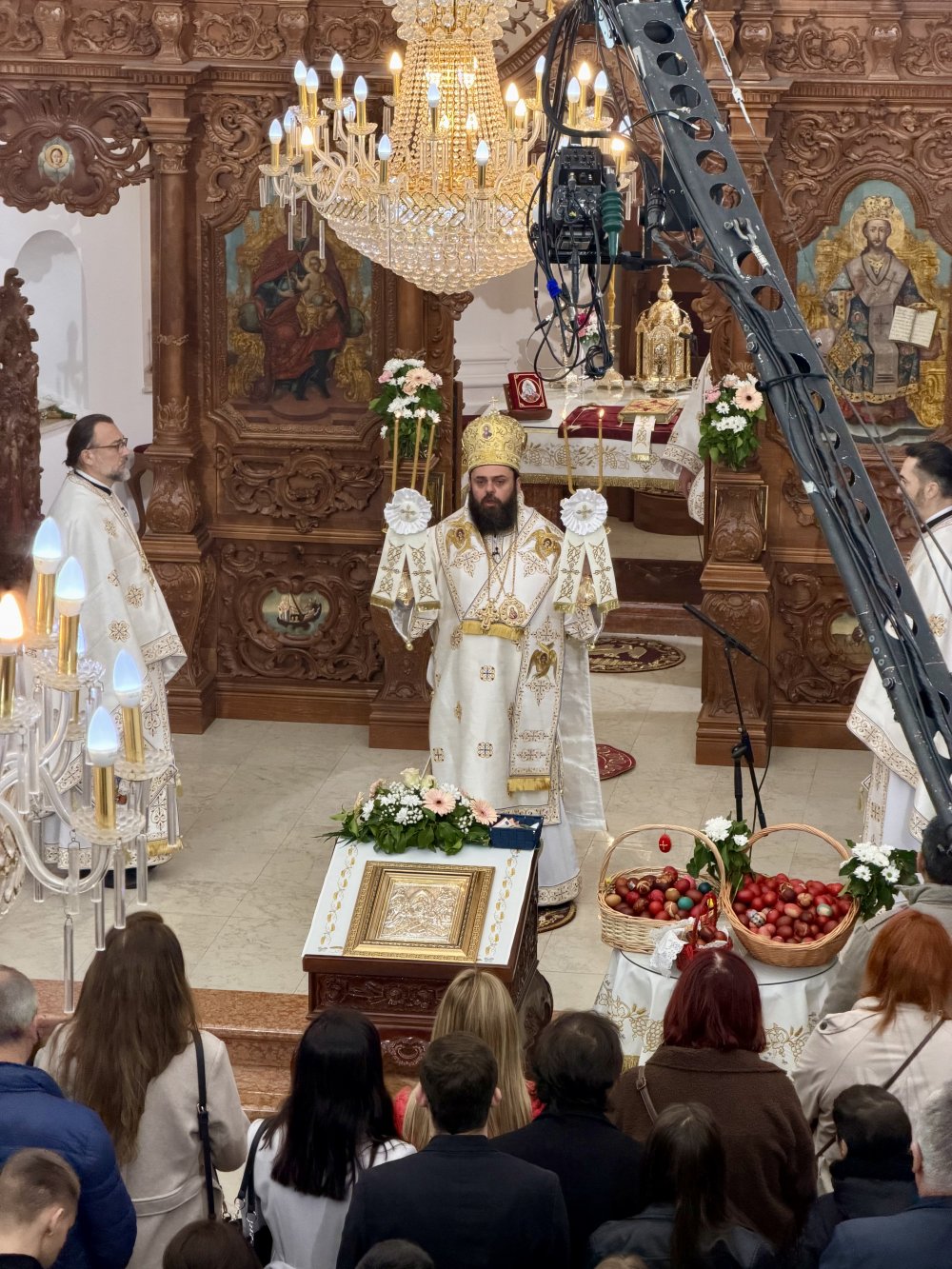 На Празник над празницима - Васкрс, 12. априла 2026. године, Његово Преосвештенство Епископ осечкопољски и барањски г. Херувим служио је Свету архијерејску Литургији у вуковарском Саборном храму.