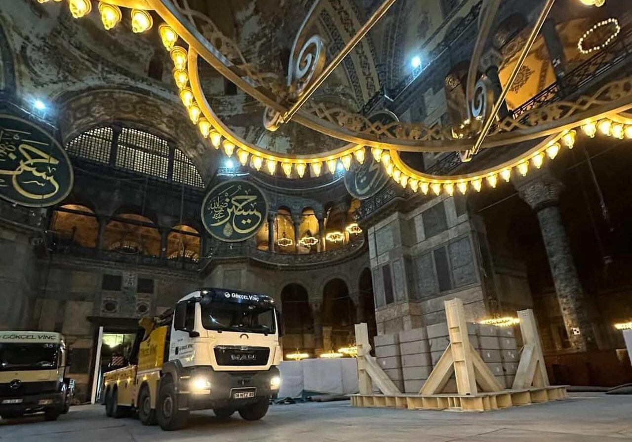 Камион са дизалицом унутар Аја Софије изазива забринутост због безбедности пода