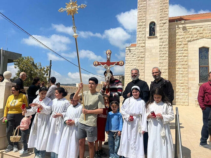 Апостолски нунције у Либану, архиепископ Паоло Борђа, присуствовао је постављању и благословио ново Распеће.