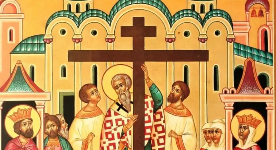Обилазећи Свету Земљу св. царица Јелена намисли да потражи часни Крст Христов. Неки старац Јеврејин, по имену Јуда, једини знаде место где се Крст нахођаше, па присиљен од царице изјави, да је Крст закопан под храмом Венериним, кога подиже на Голготи цар Адријан. Царица нареди, те порушише тај идолски храм, па копајући у дубину нађоше три крста. Док царица беше у недоумици, како да распозна Крст Христов, пролажаше мимо тога места пратња са мртвацем. Тада патријарх Макарије рече, да мећу на мртваца редом један по један крст. Када метнуше први и други крст, мртвац лежаше непромењено. А када ставише на њ трећи крст, мртвац оживе. По томе познаше, да је то часни и животворни Крст Христов. Ставише га потом и на једну болесну жену, и жена оздрави. Тада патријарх уздиже крст, да га сав народ види, а народ са сузама певаше: Господе помилуј! Царица Јелена направи ковчег од сребра и положи у њ часни Крст.