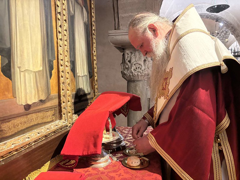 Његово Високопреосвештенство Архиепископ цетињски и Митрополит црногорско-приморски г. Јоаникије служио је данас свету архијерејску литургију, на спомен светих мученика Терентија и Помплија, 23. априла 2026. године, на моштима светог оца Николаја Мирликијског Чудотворца, у храму њему посвећеном у италијанском граду Барију.