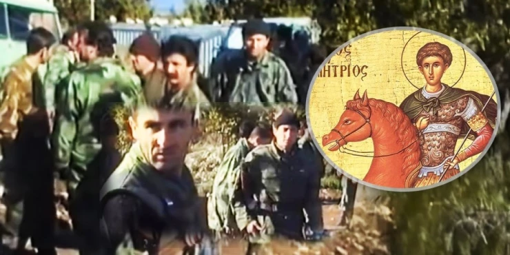 У данима најжешћих борби, у цркви Светог Димитрија у Солуну догодило се нешто што су многи верници описали као чудо. Појавио се, кажу, измучени ратник у византијским одорама. Када су га питали ко је и одакле долази, одговорио је: