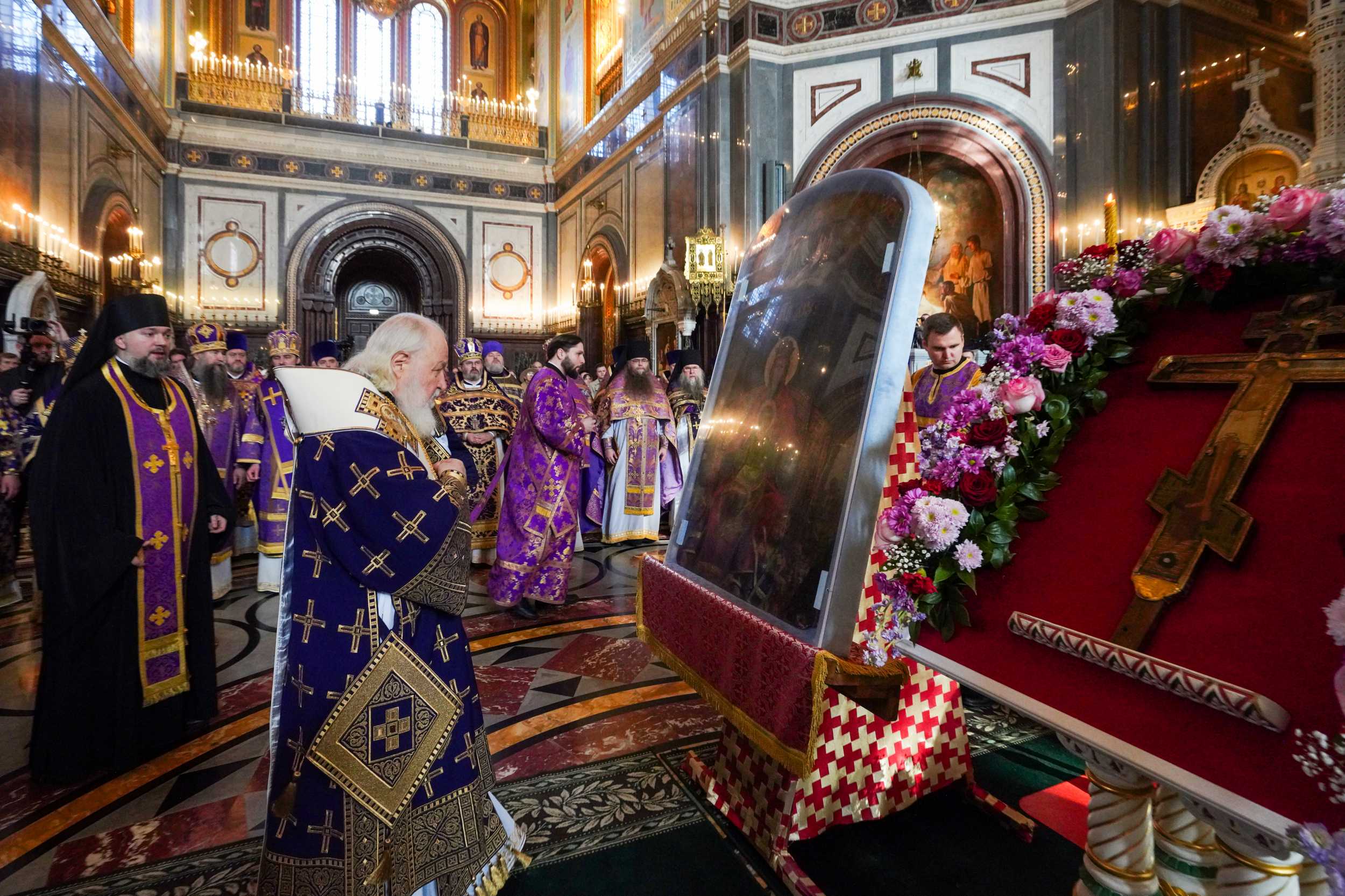 У Трећу недељу Великог поста – Крстопоклону, 15. марта 2026. године, на дан празновања иконе Пресвете Богородице „Државна“ (1917), Његова Светост патријарх московски и све Русије Кирил служио је Божанску литургију Светог Василија Великог у саборном храму Христа Спаситеља у Москви.