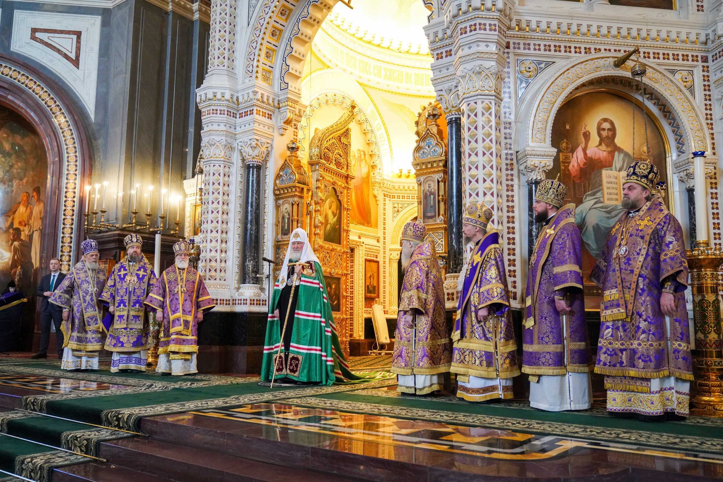 На сугубој јектенији узнесене су посебне прозбе поводом 50-годишњице архијерејске хиротоније патријарха Кирила, након чега је предстојатељ Руске Цркве прочитао молитву за Свету Русију.
