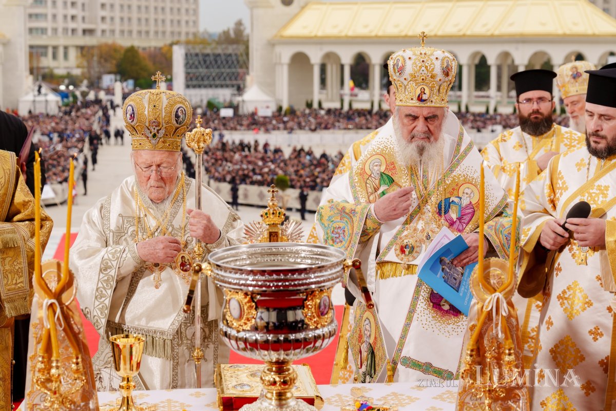 У недељу, 26. октобра 2025. у румунској престоници Букурешту извршено је освећење живописа новог Саборног храма Румунске патријаршије. Нова велелепна црква названа је „Национална катедрала“ и „Катедрала спасења румунског народа“. Овим свечаним чином обележавају се два битна јубилеја Румунске православне цркве, стогодишњица уздизања Румунске цркве на ранг Патријаршије као и 140 година од добијања томоса аутокефалије од стране Васељенске патријаршије. На прославу ових великих и значајних јубилеја позван је и васељенски патријарх Вартоломеј I. Свету архијерејску Литургију, на којој је извршен чин освећења живописа, служили су Његова Светост васељенски патријарх г. Вартоломеј I и Његова Светост румунски патријарх г. Данило, уз саслужење архијереја чланова Светог Синода Румунске православне цркве, као и 67 свештеника и 12 ђакона.
