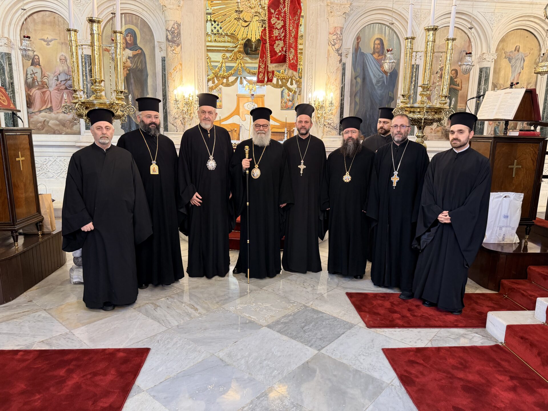 Тамо их је дочекао митрополит халкидонски Емануил, у пратњи свог протосинђела, архимандрита Евгенија Карацаса, и других сарадника. Током пријема, деца из локалне заједнице даровала су предстојатеља древне Антиохијске патријаршије пролећним цвећем.