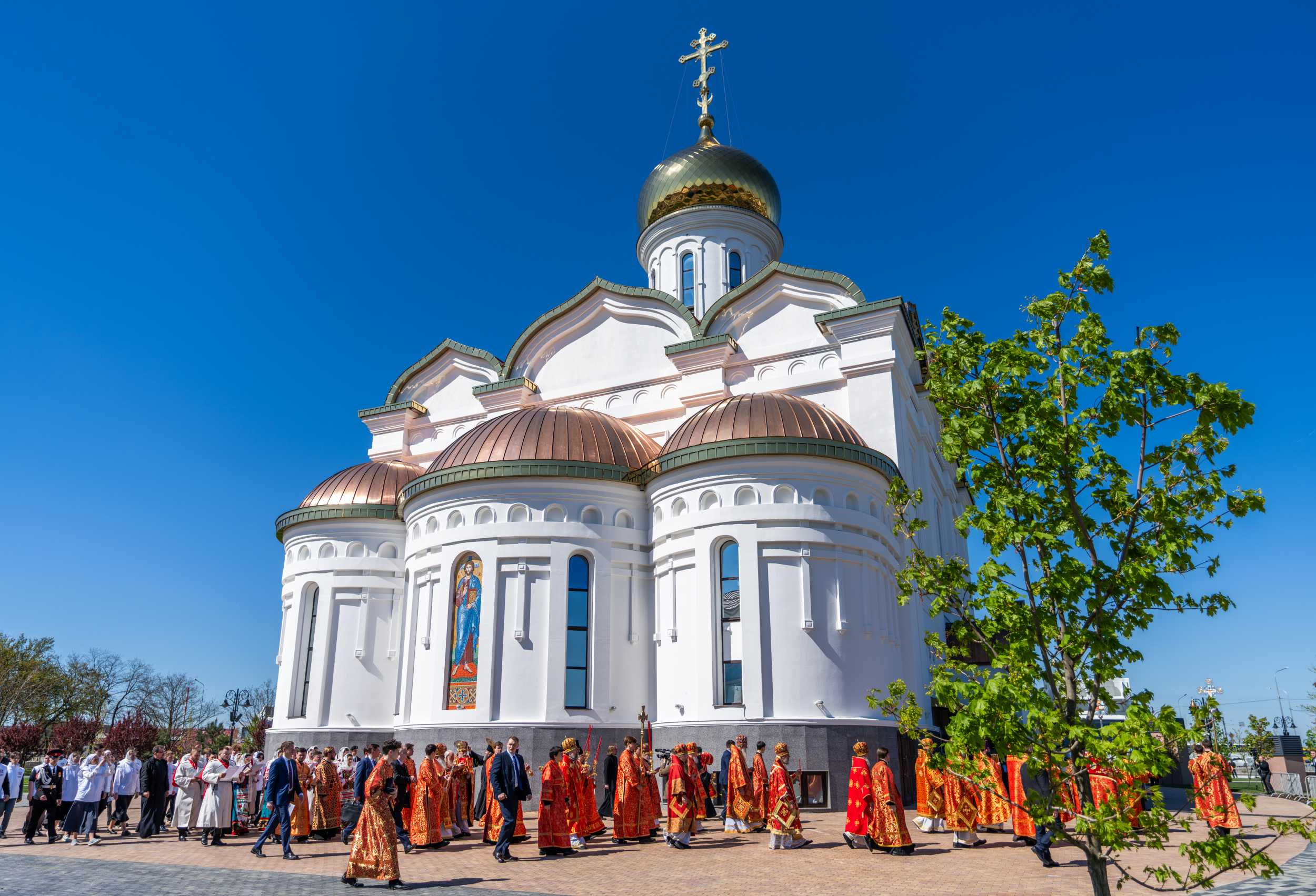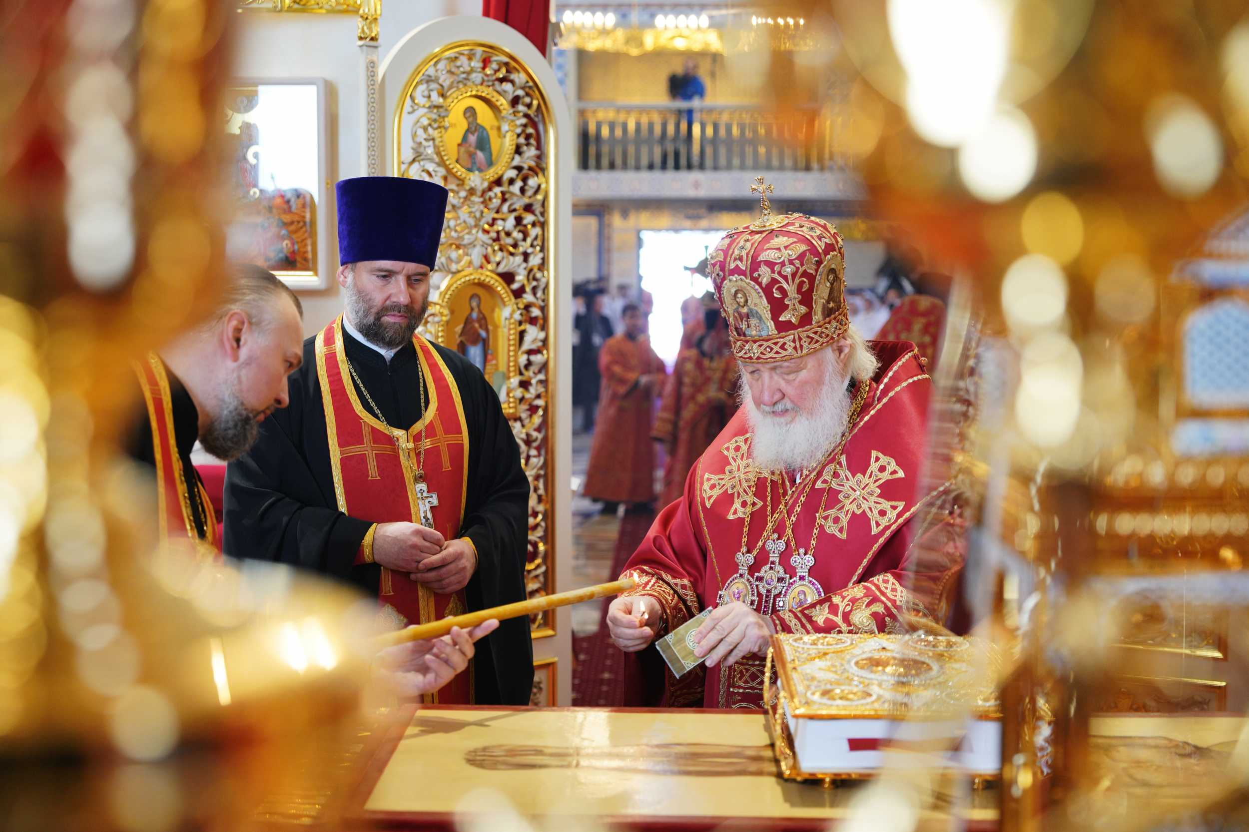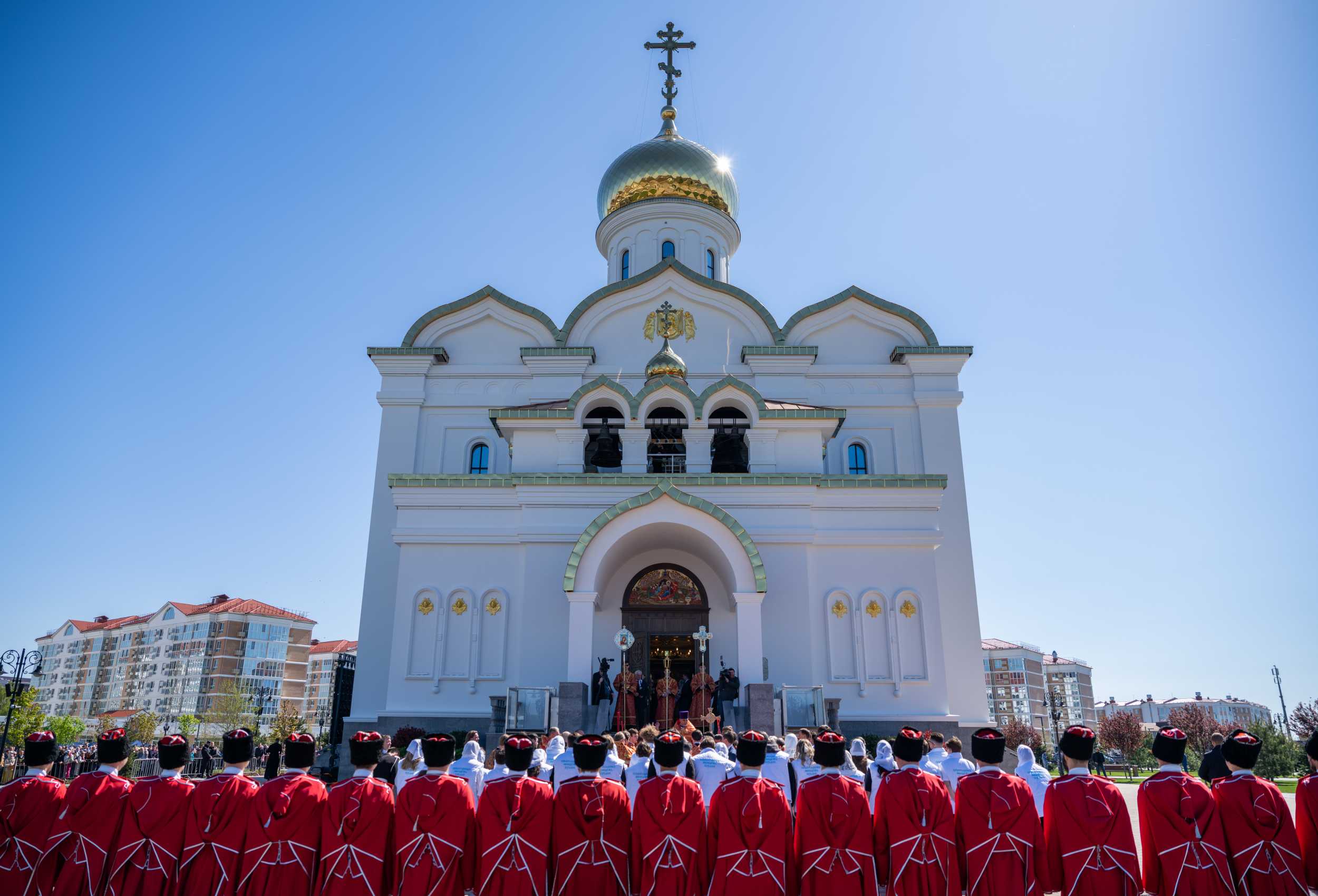 У трећу недељу по Васкрсу, посвећену Светим женама мироносицама, Његова Светост патријарх московски и све Русије Кирил извршио је велико освећење храма Рођења Христовог у станици Динској, у Краснодарском крају, и служио Свету Литургију у новоосвећеном храму.