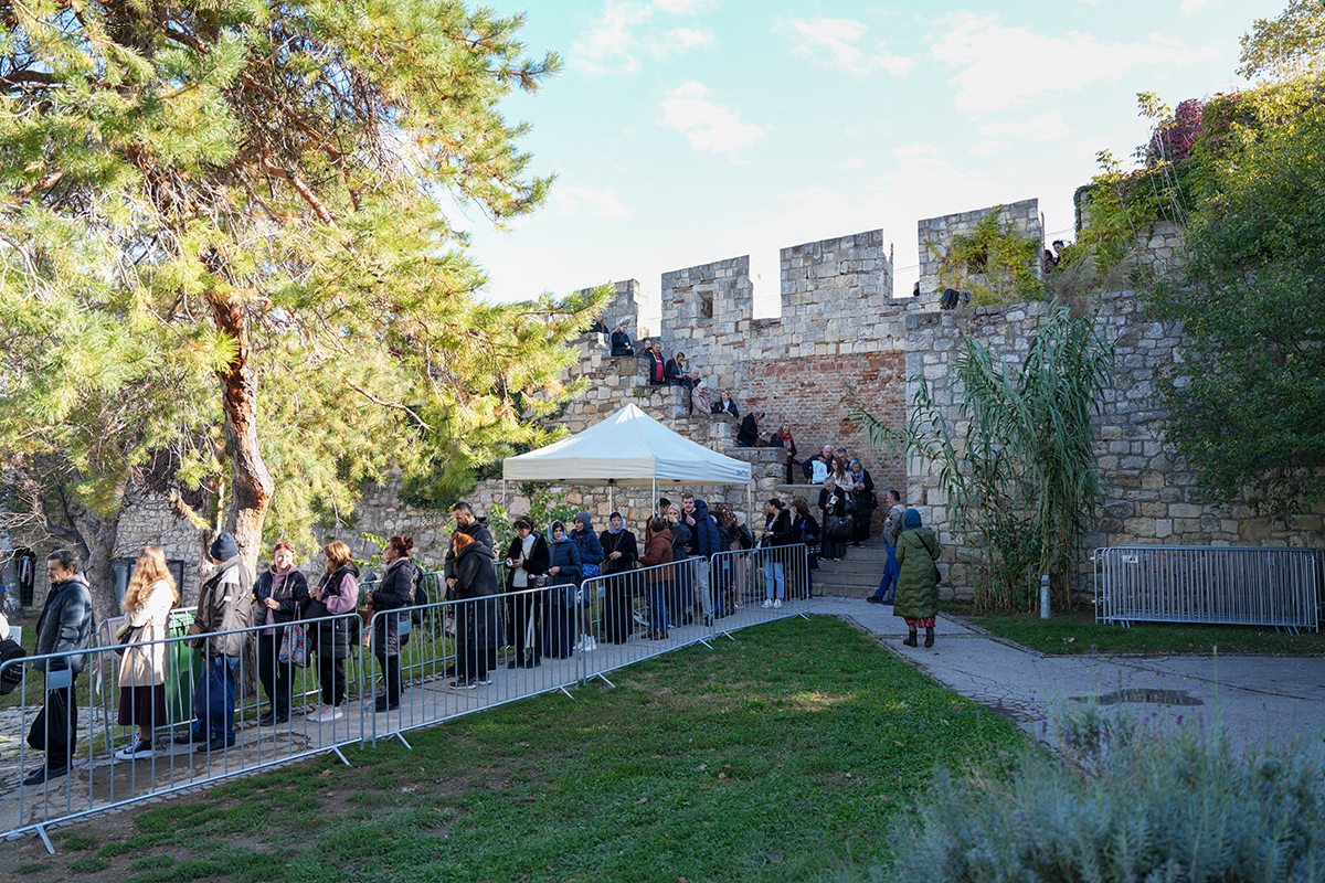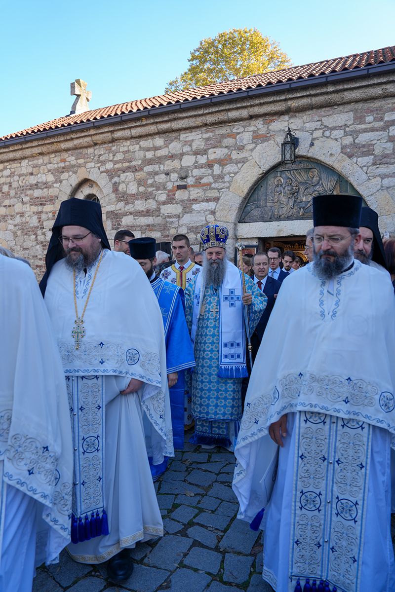 – И ево нас данас овде, где се спајају предивне реке Дунав и Сава, на Калемегдану, где су почивале мошти једне од нас, оне коју је Господ прославио, мошти Свете Петке. Ево нас на овом благословеном месту испуњеном благодаћу Божјом, месту на којем треба да се сабирамо у заједницу, али и да се сабирамо у себи. А сабирати се као заједница и сабирати своје биће, располућено, подељено и често шизофрено, могуће је само онда када смо сабрани у Господу са светитељима Божјим. Овде, на овом месту где су боравиле мошти Свете Петке, на месту које она и данас благосиља чинећи чуда, Господ се кроз њу пројављује и дотиче душе свих оних који јој се са поверењем и молитвом обраћају, а Господ одговара кроз њу због њених молитава, али и због вере оних који јој приступају и заједно са њом се моле Господу – беседио је Светејши Патријарх г. Порфирије и нагласио: