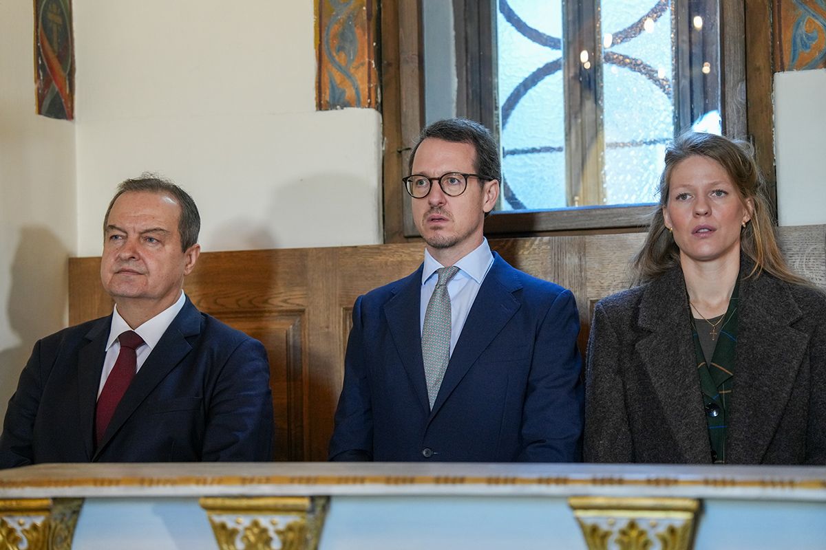 Предстојатељу Српске Православне Цркве су саслуживали: архимандрит Нектарије, главни секретар Светог Архијерејског Синода; архимандрит Данило, директор Патријаршијске управне канцеларије; протојереј Ђорђе Стојисављевић, шеф Кабинета Патријарха српског; јереј Стеван Јовановић; протођакони Драган Радић и Радомир Врућинић; и ђакон Василије Перић; уз молитвено присуство Преосвећеног Епископа лондонског и британско-ирског г. Нектарија, потпредседника Владе и министра унутрашњих послова г. Ивице Дачића, принца наследника Филипа и принцезе Данице Карађорђевић.
