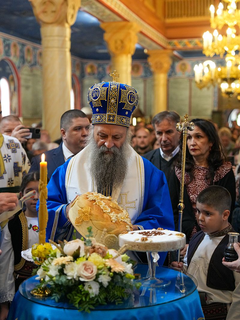 На крају свете Литургије, Светејши Патријарх г. Порфирије је благословио славски колач, честитао славу свештеном братству Покровске цркве, кумовима славе и парохијанима, а затим свима упутио очинску поуку у којој је нагласио: