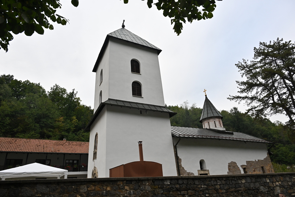 А свети оци кажу да ће свет постојати дотле док се у њему служи света Литургија. Ако, не дај Боже, престане да се служи Литургија, света више неће бити. Неће света бити, браћо и сестре. И зато су Господ, Мајка Божија и свети отац Николај, коме је овај манастир посвећен, увек били уз овај манастир и кад је страдао, и кад се обнављао, а он се обнављао онда када се народ српски духовно обнављао, кад се духовно дизао и подизао, браћо и сестре, без обзира на све невоље које је сигурно претрпео кроз историју, а тога је било заиста много, браћо и сестре. Много је тога било. И заиста, кад би нам ови зидови манастира и његове фреске могли, како да кажем, да проговоре, да нам саопште све те потресне исповести које је народ овде долазио да пред невидљивим, али свуда присутним Богом искаже — пред свештеником, пред живим Богом, браћо и сестре — да изнесе оне тајне које човек носи у себи, а нема храбрости да каже ни оцу ни мајци, али у Бога има поверење. То не значи да немамо поверење у своје родитеље, али Бог је тај који може много више да нам помогне у невољама него што могу отац, мајка или било који човек. Дакле, браћо и сестре, овде је наш народ исповедао своје грехе, овде је долазио да се радује када га радост обузме, али и да тугује када га туга обузме. Долазио је, браћо и сестре, да би кроз ову светињу и кроз свету Литургију упознао, у ствари, своју душу, да би упознао и веру, и љубав, и своју, и свога народа. А те тајне су само Богу знане. Кад би ове фреске у овоме манастиру проговориле, могли бисмо да испишемо предивну, истиниту, мукотрпну, дуготрајну, али истрајну и велику историју српскога народа. Током ових шест векова у овом манастиру све је било у знаку Распећа Христовог и у знаку Васкрсења. Јер, ко се са Христом распиње, тај са Христом и васкрсава. Ко се не распиње са Христом, тај неће ни васкрснути са Христом, браћо и сестре. Дакле, све је то доживљавао наш благочестиви народ. Овде, кроз своју веру, кроз Литургију и хришћански живот, овај манастир је литургијом и Јеванђељем крепио снагу овоме народу да остане веран Богу и веран роду своме. Да остане веран Цркви. А било је, кроз историју овог манастира, много покушаја да се људи одврате од Бога. Сећамо се и оне несрећне идеологије, која, не знам да ли још увек није сасвим нестала — јер још увек има оних који се бусају у прса и говоре: „Бог је тамо негде, на страни, а овде је чињеница.“ Дакле, браћо и сестре, зато је овај манастир опстао свих ових векова, и Богу хвала, опстаје и данас као сведок српске духовности, културе и молитве. Зашто је овај манастир опстао толико векова, кроз све невоље које је пролазио, браћо и сестре? Зашто? Зато што је народ веровао у Бога, и што је живео вером, што је веру претварао у дела. Што му вера није била само на језику и на устима, него на делима. Тако је и остао, зато што је свака стопа ове порте манастирске, браћо и сестре, натопљена молитвеним сузама оних који су овде живели, и знојем оних који су градили и обнављали овај манастир. И зато је свака стопа овде натопљена, у исто време, и крвљу бранилаца, и знојем, и трудом градитеља. Заиста, ако гледамо наше манастире и цркве, заиста је наш народ градитељски народ. Нажалост, било је и оних који су ометали да се граде храмови. Браћо и сестре, зато је свака стопа овде освећена, заливена, као што рекох, молитвама оних који су овде живели, који су се овде подвизавал