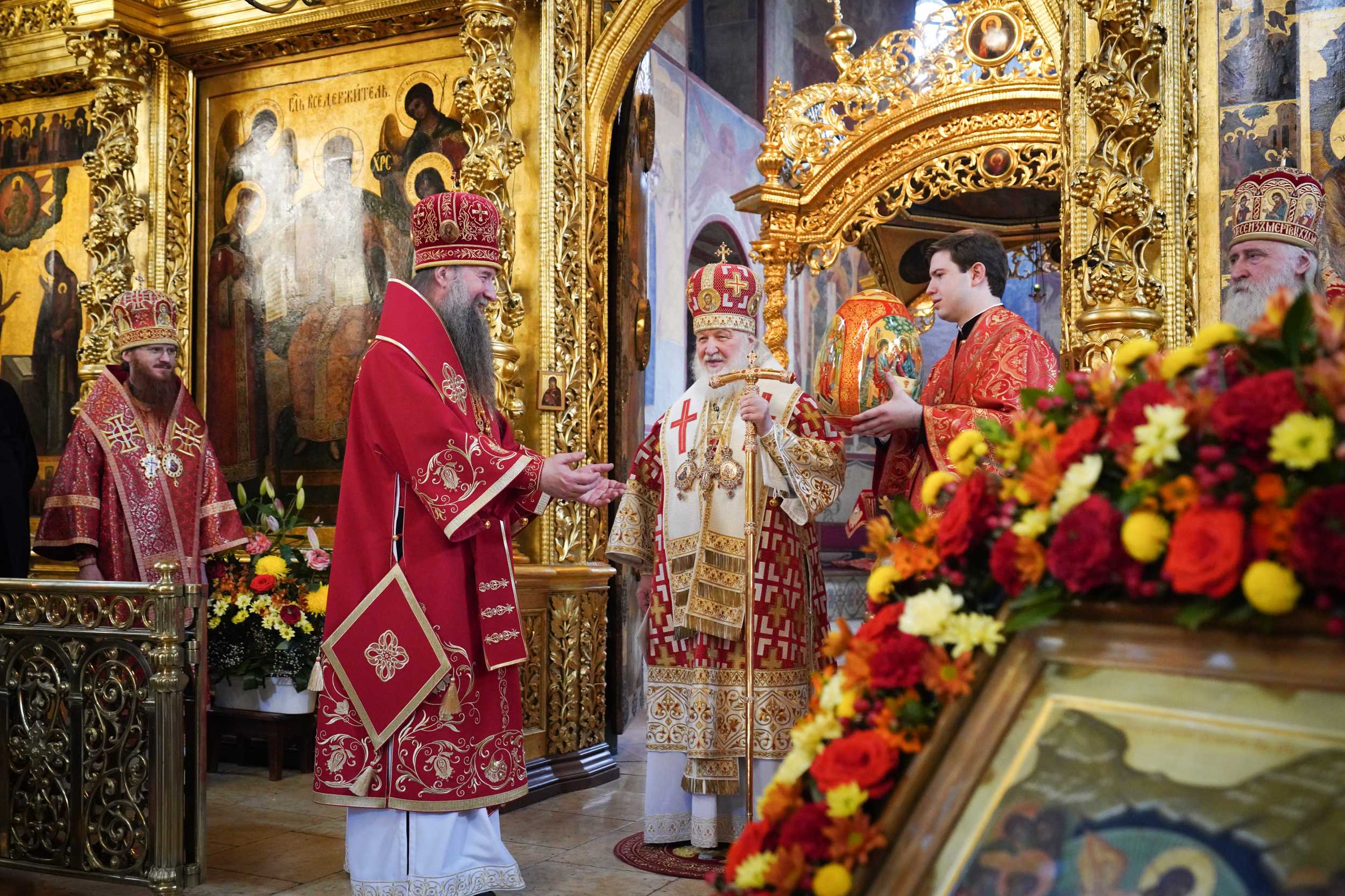 У Успенском саборном храму патријарх је началствовао Светом Литургијом, уз саслужење више архијереја, међу којима су били митрополит каширски Теогност, као и епископ сергијево-посадски и дмитровски Кирил, намесник Лавре и ректор Московске духовне академије. Саслуживали су и други архијереји, братство Лавре у свештеном чину и свештенство Москве.