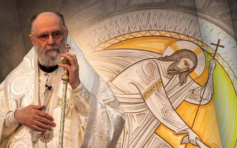 Данас се радује и слави цео свет! Спаситељ света, почетак и извор живота, Спаситељ наш васкрсе из мртвих и разруши врата пакла! Васкрсе Господ, раскинути су окови зла и нестала је сила ђавоља! Васкрсе Господ и вечна светлост је обасјала целу земљу! Васкрсе Господ Бог наш и љубав отвори људима све затворено и замандаљена врата на која нису могли да уђу!