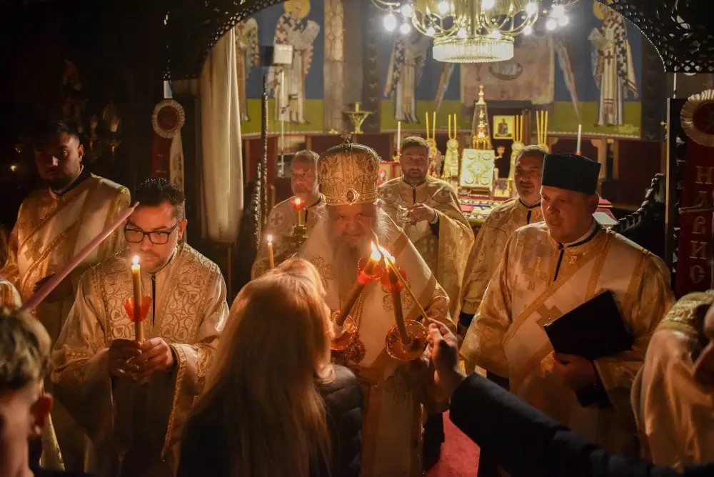Свечано прослављање победе живота над смрћу отпочело је у ноћи између 11. и 12. априла раздавањем Светог Благодатног Огња, након чега је служена Пасхална полуноћница. Том приликом, радосно појући: „Васкрсење Твоје, Христе Спаситељу, анђели опевају на небесима, а и нас на земљи удостој да Те чистим срцем славимо“, архиепископ, свештенослужитељи и верни народ извршили су трократни опход око Саборног храма.